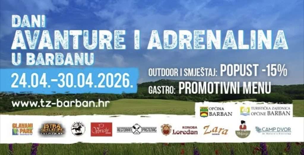 Nakon odličnih reakcija posjetitelja prošle godine, Barban još jednom poziva sve ljubitelje aktivnog odmora, prirode i dobre hrane da iskoriste proljetne dane za nezaboravan boravak u srcu Istre. Od 24. do 30. travnja 2026. održavaju se Dani avanture i adrenalina u Barbanu, promotivna akcija koja spaja uzbuđenje outdoor aktivnosti, autentične istarske okuse i opuštanje u prirodnom okruženju.